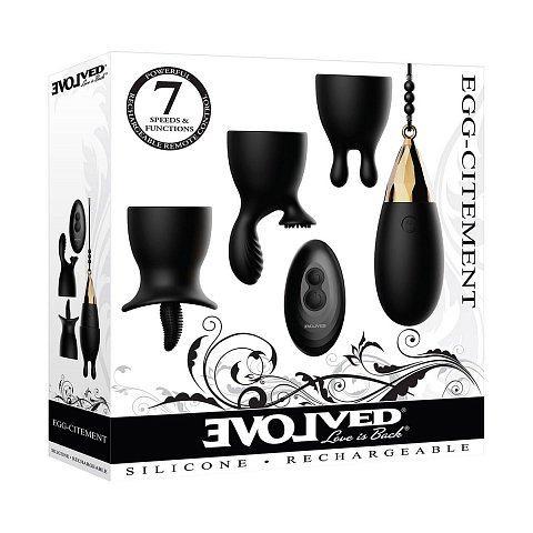 Черное виброяйцо с 3 сменными насадками и пультом ДУ Egg-Citement