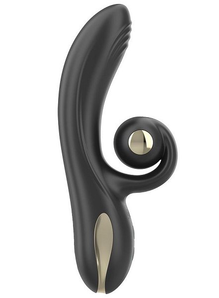 Чёрный вибратор с клиторальным отростком MiSS Bi Black Line - 17 см.
