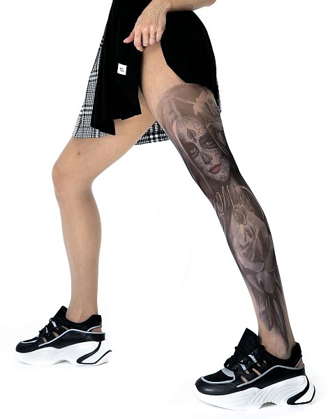 Отзывы о Колготки +size с крупным принтом-тату в виде девушки с макияжем калавера