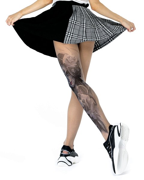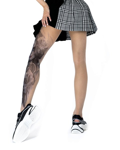 Колготки с эффектом тату. Принт не стирается, не выгорает на солнце, не пачкает кожу. Можно стирать в стиральной машине. Колготки матовые. Плотность - 40 ден.