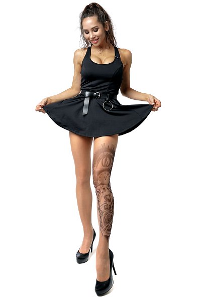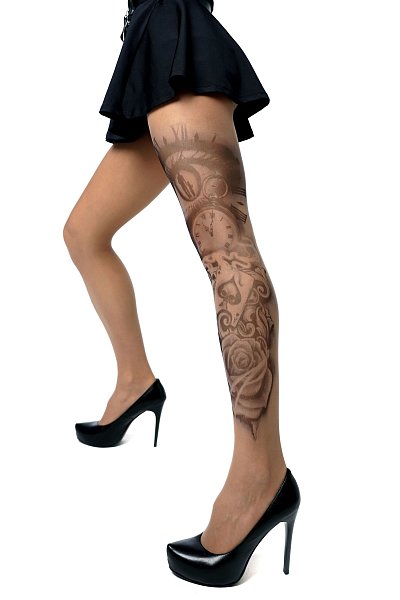 Колготки с имитацией татуировки на всю левую ножку