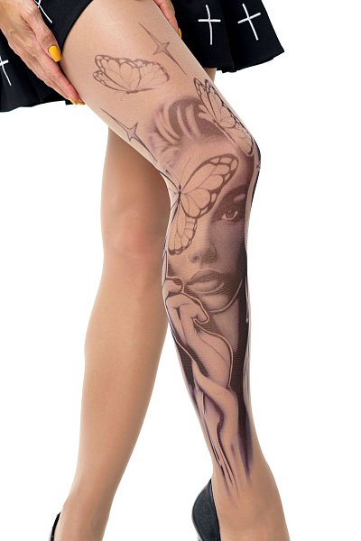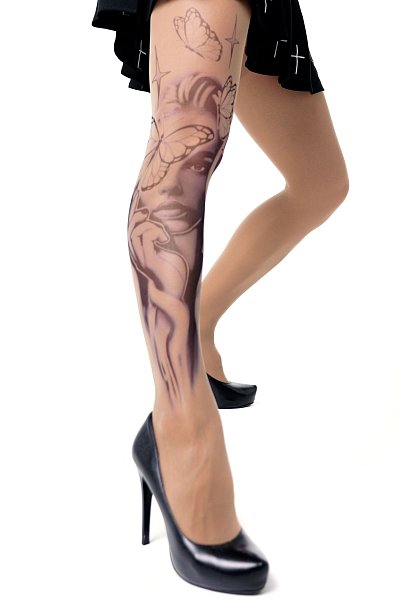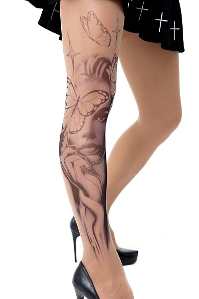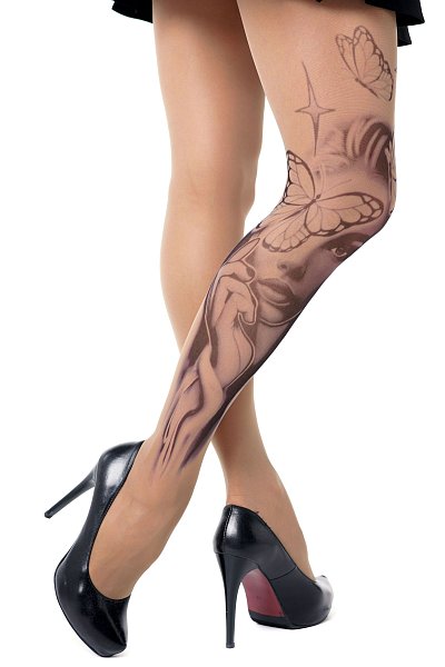 Колготки с эффектом тату. Принт не стирается, не выгорает на солнце, не пачкает кожу. Можно стирать в стиральной машине. Колготки матовые. Плотность - 40 ден.