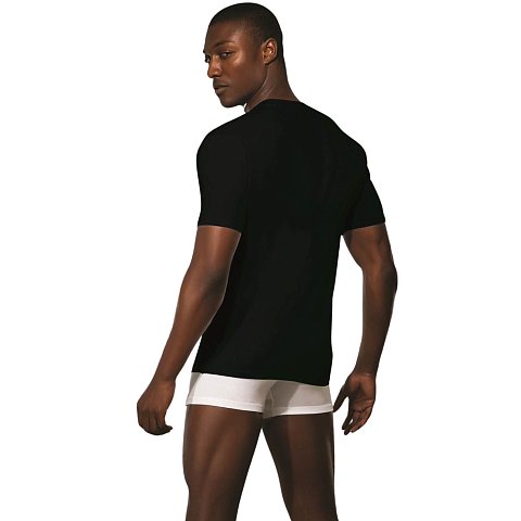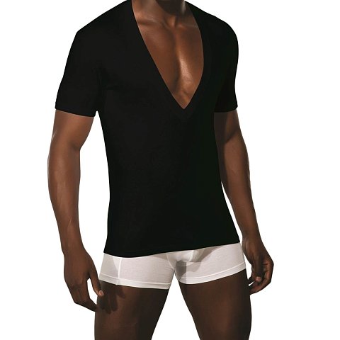 Мужская футболка со стильным глубоким вырезом. Натуральные материалы (хлопок + модал) с добавлением эластана обеспечивают отличную посадку и сохраняют форму даже после многократных стирок.