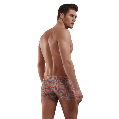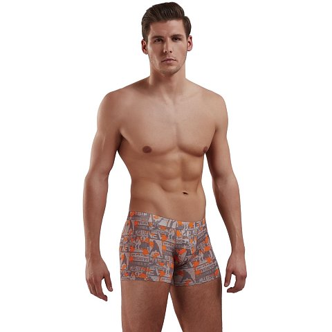 Мужские трусы-макси с силуэтами различных спортсменов и яркими оранжевыми «кляксами». Мягкий, приятный для тела эластичный натуральный материал. Резинка на поясе вшита внутрь материала для большего комфорта. Удобный анатомический крой без заднего шва. Передняя панель с подкладкой.