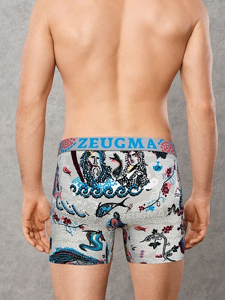 Мужские облегающие трусы-боксеры с принтом, имитирующим древние мозаичные панно из археологических раскопок. Эластичный дышащий материал из смеси натуральных волокон (хлопок + модал) очень приятен для тела и подходит для ежедневного использования. Удобный анатомический крой без заднего шва. Передняя панель из двойного слоя материала. На поясе мягкая и комфортная пришивная резинка с фирменным логотипом бренда «Doreanse» и названием коллекции «Zeugma».