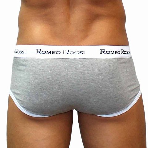 Набор из 3 серых трусов-брифов с контрастной резинкой. Трусы изготовлены из дышащего хлопка и эластана. Трусы-брифы с низкой посадкой. Тянущийся эластичный пояс с повторяющимся логотипом Romeo Rossi.