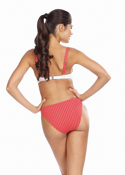 Раздельный купальник: бюстгальтер-фашия с градуированными чашками и трусики-слип на завязках. Застежка - поворотный замок, бретель через шею. В комплекте: лиф, плавки.