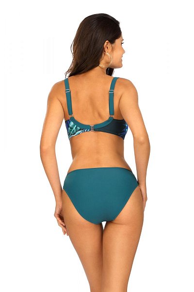 Купальник раздельный для женщин больших размеров. Бюстгальтер на тяжёлую грудь с мягкими чашечками на косточках, с корректирующей сеткой, бретельки регулируются по длине, на спине застёжка. Трусики слип, на стрейч-подкладке, с посадкой выше среднего, с корректирующими высоту кулисками. В комплекте: лиф, плавки.