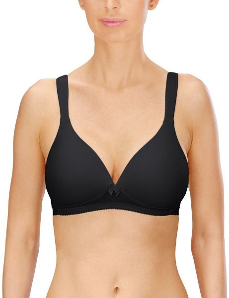 Бескаркасный бюстгальтер из 100% хлопка с мягкими молдированными чашками. Х-образная конструкция (перекрещивающиеся под грудью и по линии декольте отделочные ленты) обеспечивает дополнительную поддержку груди. Эластичные бретели регулируются сзади.