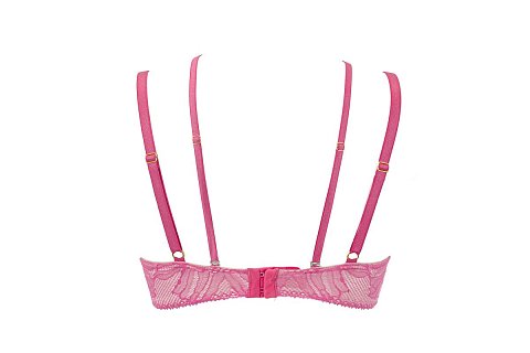 Бюстгальтер Aruba P-UP на косточках, с дополнительными боковыми поддержками, чашки шитые на тонком поролоне светло-розового цвета, со съёмными пуш-ап вкладышами, внешняя сторона чашки и спинка кружевные. Бретельки не отстёгиваются, регулируются по длине. В зоне декольте дополнительные съемные тонкие бретели с декоративным подвижным кольцом. На спине застёжка на удлинитель, количество крючков в ряду застёжки, увеличивается пропорционально размеру бюстгальтера, фурнитура цвета золота. В зоне декольте съемные декоративные бретели, регулируемые по длине.