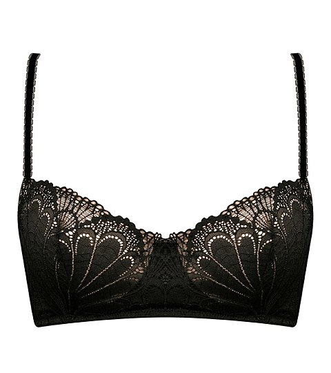 Бюстгальтер пуш-ап с градуированной чашкой на косточках. Несъемные бретели. Выполнен из эластичной сетки с цветочной вышивкой в стиле ретро.