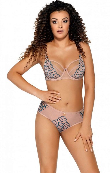 Бюстгальтер с мягкой чашкой на каркасах. Чашка с горизонтальным рельефом и боковым подрезом для максимальной поддержки груди. Высококачественное швейцарское шитье в виде роскошных листьев, украшающих область декольте и бретели бюстгальтера, в сочетании с фестончатыми кромками, делают эту серию поистине великолепной. Эластичная лента с вышивкой в верхней части чашек бюстгальтера обеспечивает комфорт и отличную посадку.
