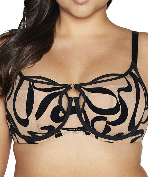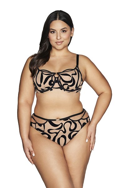 Бюстгальтер Velvet Desert выполнен на основе бюста 1130 на косточках, чашки шитые из телесной сетки, внешняя сторона чашек-топ из эластичного телесного тюля с флокированными черными лентами с кокетливой золотой петелькой. Резинки, бретели, окантовка косточек контрастного черного цвета. Пояс двойной из черной стабилизирующей сетки и телесной флокированной сетки, продублированной телесной сеткой. Бретели не отстёгиваются, регулируются по длине, фурнитура металлическая цвета желтого золота. На спине застежка-удлинитель на 2 или 3 крючка. У бюстгальтеров/купальных лифов AVA довольно тугой пояс, который адаптируется под тело после нескольких дней носки или одной-двух стирок. Рекомендуем использовать удлинитель пояса бюстгальтера на первое время либо выбирать следующий за «своим» размер, с поясом длиннее.