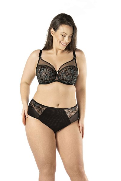 Бюстгальтер с мягкими чашечками на косточках. Чашки шитые, с боковым подкроем, из эластичной ткани и сетки с вышивкой. Бретельки регулируются по длине, не отстёгиваются. На спине застёжка на удлинитель, количество крючков в ряду застёжки увеличивается пропорционально размеру бюстгальтера. У бюстгальтеров/купальных лифов AVA довольно тугой пояс, который адаптируется под тело после нескольких дней носки или одной-двух стирок. Рекомендуем использовать удлинитель пояса бюстгальтера на первое время либо выбирать следующий за «своим» размер, с поясом длиннее.