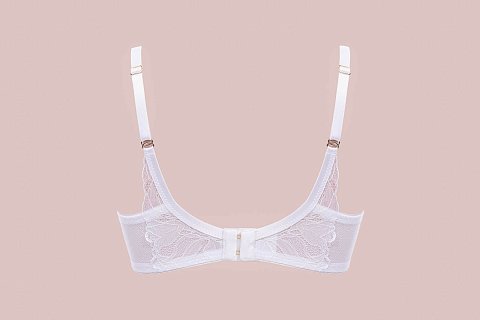 Бюст Glow PU выполнен на косточках (на каркасах), с дополнительными боковыми поддержками, чашки шитые, нижняя часть на тонком поролоне белого цвета, с внешней стороны из кружева в легким мерцающим эффектом, внутренняя сторона проложена хлопковым трикотажем, верхняя часть кружевная, продублирована сеткой в тон. Бретельки не отстёгиваются, регулируются по длине, фурнитура металлическая цвета желтого золота. Спинка кружевная продублирована сеткой в тон. На спине застёжка на удлинитель, количество крючков в ряду застёжки, увеличивается пропорционально размеру бюстгальтера.