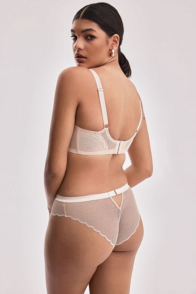 Бюстгальтер Chita на косточках, чашки на тонком поролоне, со съёмными пуш-ап вкладышами, внешняя сторона кружевная. Бретельки не отстёгиваются, регулируются по длине. На спине застёжка на удлинитель, количество крючков в ряду застёжки, увеличивается пропорционально размеру бюстгальтера.