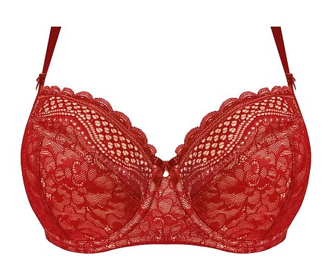Бюстгальтер-анжелика, фашия с градуированной чашкой. Выполнен из микрофибры и кружева с растительным орнаментом.