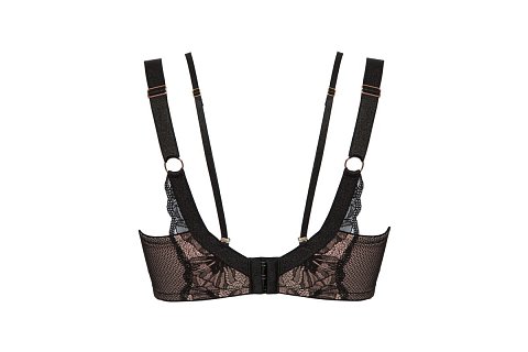 Бюстгальтер Volare U/W выполнен на косточках, чашки шитые на тонком поролоне телесного цвета, со съёмными пуш-ап вкладышами, внешняя сторона богато декорирована нежным цветочным кружевом. Пояс из эластичного сетчатого кружевного полотна на контрастной подкладке из стабилизирующей сеточки. Бретельки не отстёгиваются, регулируются по длине. На спине застёжка на удлинитель, количество крючков в ряду застёжки, увеличивается пропорционально размеру бюстгальтера, фурнитура металлическая цвета меди. В зоне декольте дополнительные съемные тонкие бретели, регулируются по длине, крепятся между чашками и на спинке.