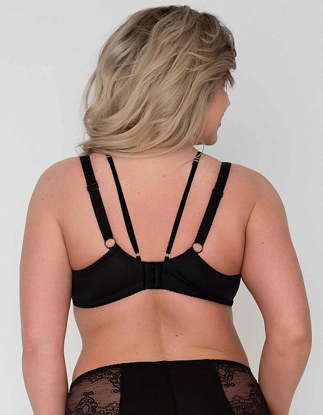 Бюстгальтер-топ выполнен с мягкими чашками на косточках, с дополнительными боковыми поддержками. Эластичная сетка в виде топа пришита к лифу, хорошо подчеркивает форму груди. Завершает идеальный образ внешний топ из широких полос эластичного кружева на тонких, регулируемых по длине, бретелях, зона декольте украшен подвеской с кристаллом. Спинка из стабилизирующей сетки, Бретельки регулируются по длине, не отстёгиваются, на спине застежка-удлинитель, фурнитура металлическая крашеная.