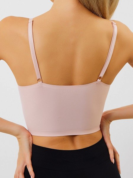 Топ-бралетт с регулируемыми бретелями, бесшовный, формованные вставки вынимаются, ткань - микрофибра, очень комфортный, можно носить как самостоятельный топ. В наборе 2 топа - черный и бежевый.