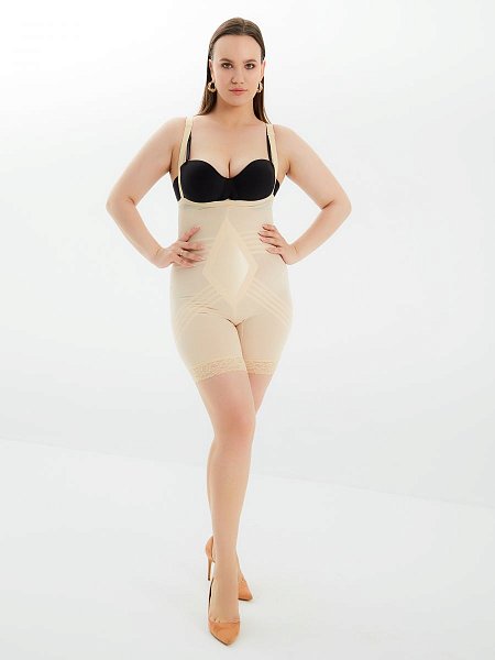 Торсет-панталоны очень сильной степени коррекции и особым кроем из круговых швов, обеспечивающих уникальную коррекцию бедер и талии. Нижний край панталон оторочен кружевом с силиконовой лентой, надежно закрепляющейся на теле. Имеется эксклюзивное гигиеническое отверстием для удобства использования.
