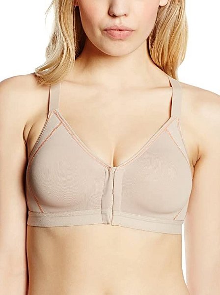 Спортивный бескаркасный бюстгальтер Nora с мягкими чашками, из высококачественной 2-хслойной микрофибры. Удобная фронтальная застежка на 6 крючков. Т-образная спинка обеспечивает отличную поддержку во время занятий спортом. Расширенные несъемные бретели регулируются по длине. Особый мягкий крой и гипоаллергенный материал позволяют использовать изделие, как бюстгальтер для беременных. Контрастная отстрочка придает современный вид.