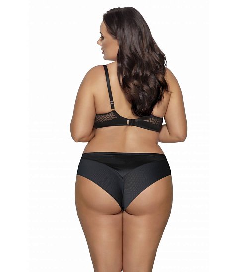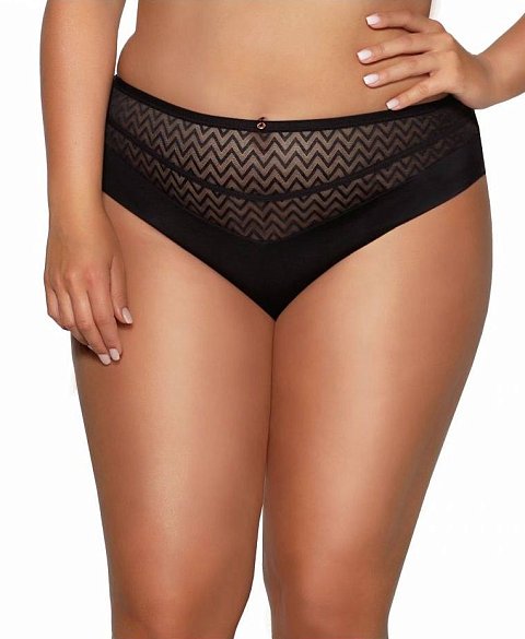 Трусики-бразилиана со средней линией талии Innesa: спинка из эластичного трикотажного полотна и сетки, сложенной вдвое, спереди из трикотажного полотна, продублированного сеткой, со вставками из эластичного зигзагообразного тюля. Ластовица проложена 100% хлопком.