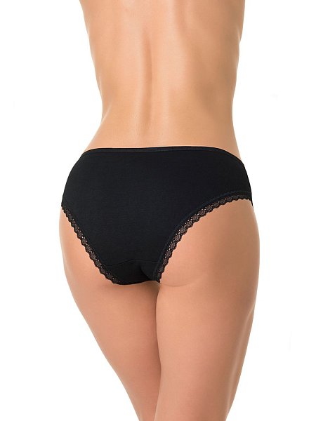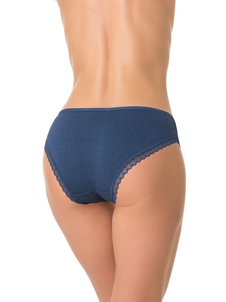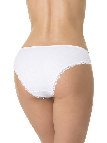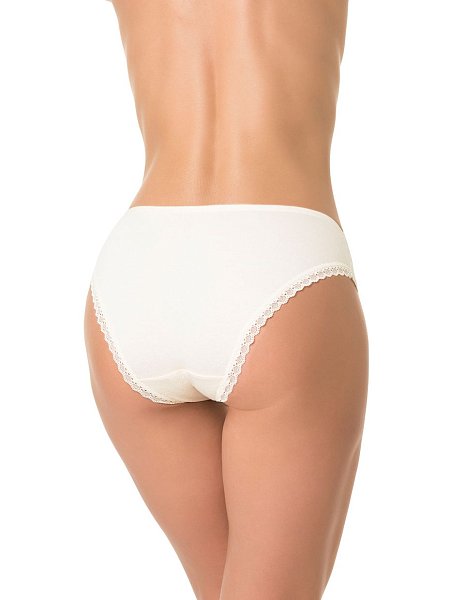 Трусы со средней линией талии, выполнены из мягкого хлопка со спандексом. Ножки обработаны плоским кружевом. Передняя деталь декорирована узким кружевом.