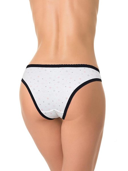 Женственные и обольстительные трусы-танга из хлопкового эластичного полотна. Средняя высота посадки. Широкое кружево с задней панели переходит на переднюю, образуя декоративные вставки по бокам. Передняя панель гладкая, с двумя декоративными бантиками на линии талии. Вырезы по ноге на передней панели обработаны узкой резинкой с резным краем. Ластовица: 100% хлопок.