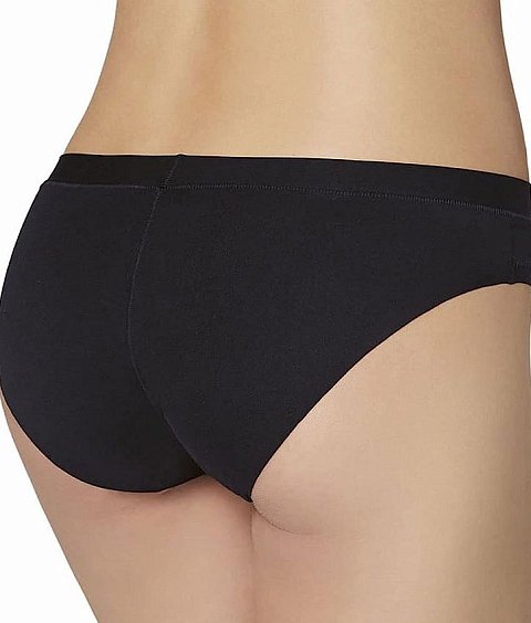 Трусики-слип с заниженной линией талии из микрофибры ультра-стрейч. Имеют универсальный размер. Высота бочка 5 см. Резинки по талии и линия открытия ноги спереди обработаны мягкой окантовкой. Имеют анатомическую посадку за счет сборки по заднему шву и бесшовный край по линии открытия ноги сзади. Сзади невидимый край с лазерной обработкой. Ластовица выполнена из уникального хлопкового материала.