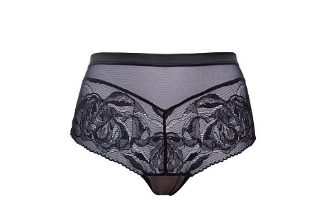 Трусики-стринги с завышенной линией талии сложного кроя Frozen Black выполнены из эластичного кружевного полотна с эффектом мерцания и сетки, фурнитура металлическая цвета меди. Ластовица из 100% хлопка телесного цвета. Внимание: европейские размеры! Для определения российского размера необходимо прибавить 6!